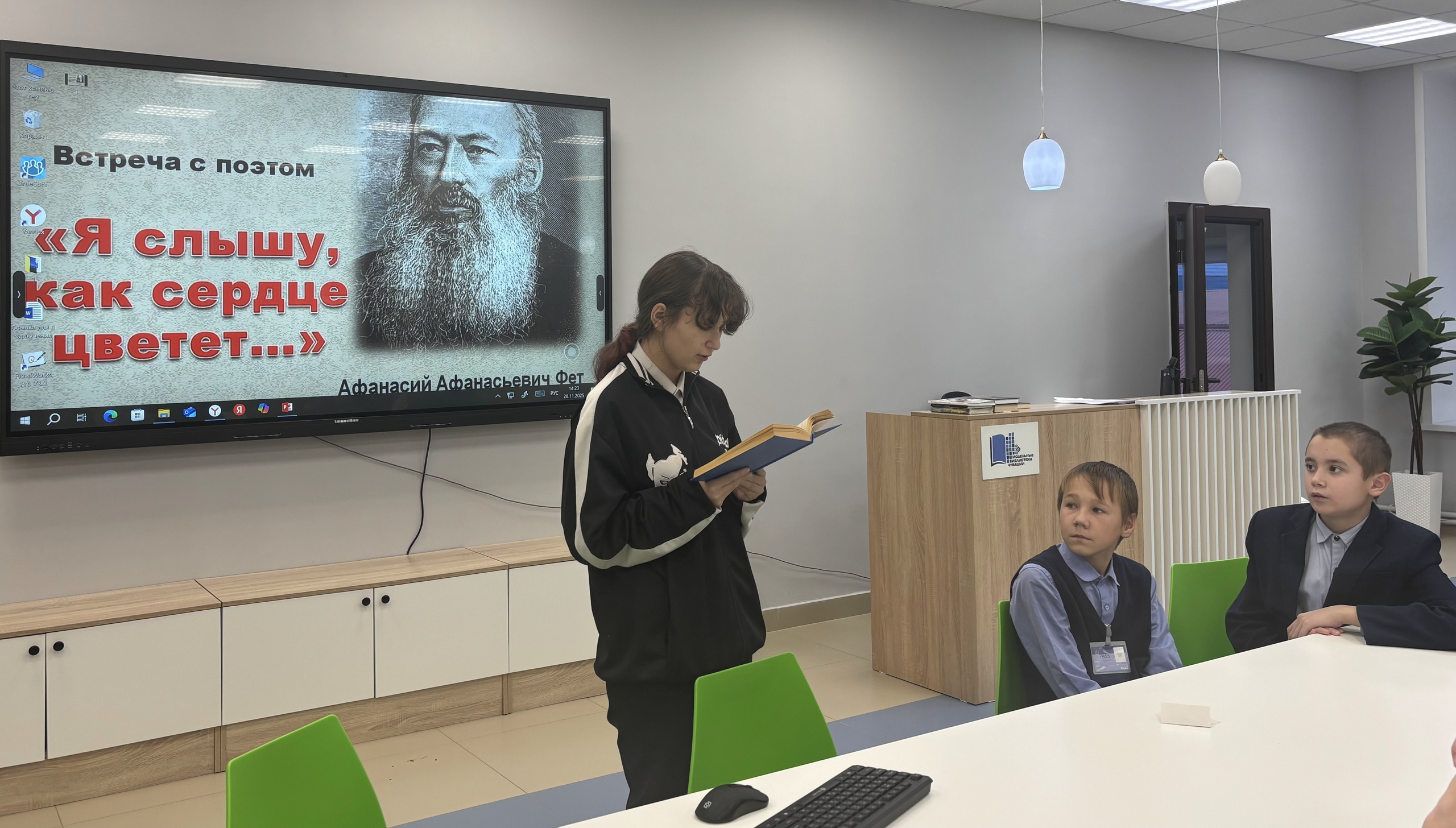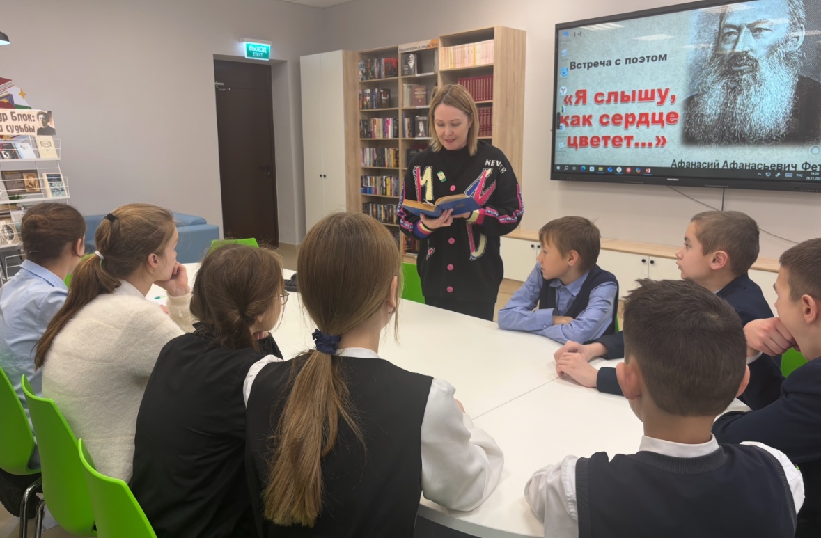 В зале «Сила труда» Центральной библиотеки состоялось значимое культурное событие — поэтический час, посвящённый 205-летию со дня рождения выдающегося русского поэта-лирика Афанасия Афанасьевича Фета. Мероприятие было организовано для учащихся Большеатменской школы. Встреча началась с вступительного слова библиотекаря, который познакомил ребят с основными вехами жизни и творчества поэта. Из видеопрезентации «Жизнь и творчество Афанасия Фета» участники узнали о том, как складывался творческий путь Афанасия Фета, какие темы преобладали в его произведениях. Особое внимание было уделено художественным особенностям поэзии Фета. Школьники погрузились в удивительный мир его лирики, где природа и человеческие чувства переплетаются в единое целое. В ходе мероприятия учащиеся читали стихотворения поэта. Поэзия Фета, отличающаяся особой музыкальностью и глубиной чувств, нашла живой отклик в сердцах юных читателей. Ребята с особым вниманием слушали строки о природе, любви и красоте окружающего мира.