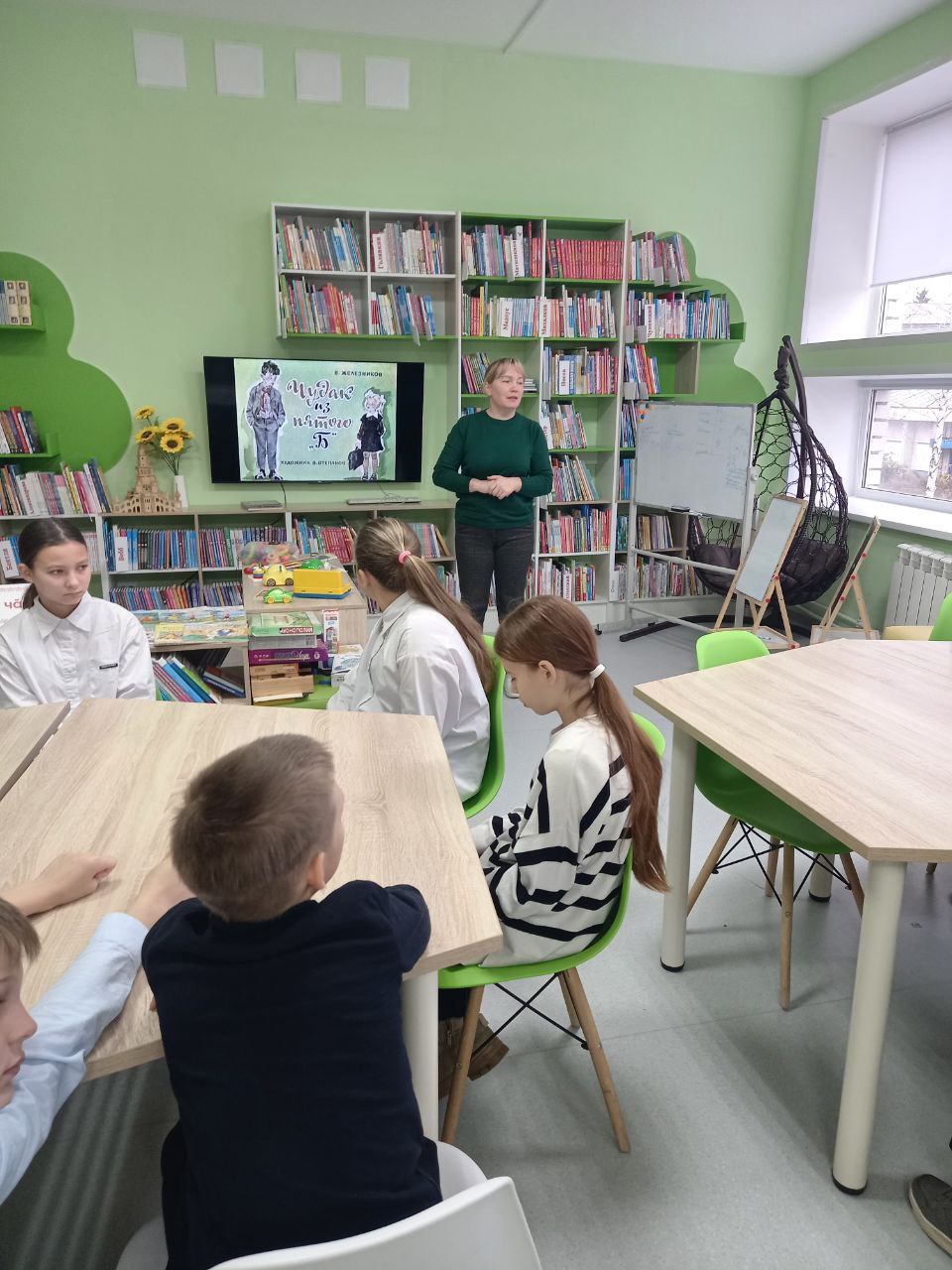 26 октября 2025 года исполнится 100 лет со дня рождения выдающегося русского писателя и кинодраматурга Владимира Карповича Железникова (1925–2025). В преддверии юбилея писателя в зале «Сила Семьи» прошел литературный час «Уроки жизни, уроки доброты». Ученики 5 «А» класса познакомились с жизнью и творчеством Владимира Железникова. Библиотекарь рассказала, что его первый сборник рассказов «Разноцветные истории» вышел в 1957 году, а известность пришла к нему с повестью «Чудак из шестого „Б“» (1961). Однако самой значимой работой Железникова стала повесть «Чучело», ставшая основой для одноименного фильма, снятого режиссером Р. Быковым. Эта повесть актуальна и сегодня, поднимая важные вопросы подростковой жестокости, социального неравенства и нравственной глухоты взрослых. Особое внимание было уделено повести «Чудак из пятого „Б“», где ребята узнали о некоторых ключевых моментах из жизни главного героя Бориса, который так похож на учеников 5 «А» класса. Ученики читали выразительно, с пониманием и правильными акцентами, а также внимательно слушали друг друга.