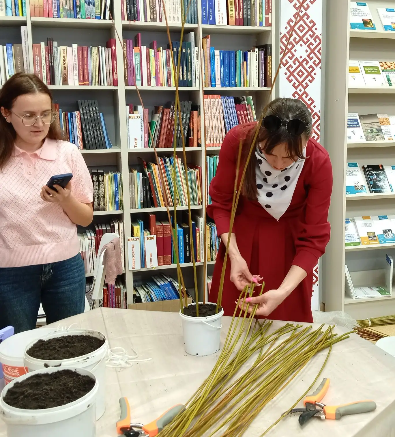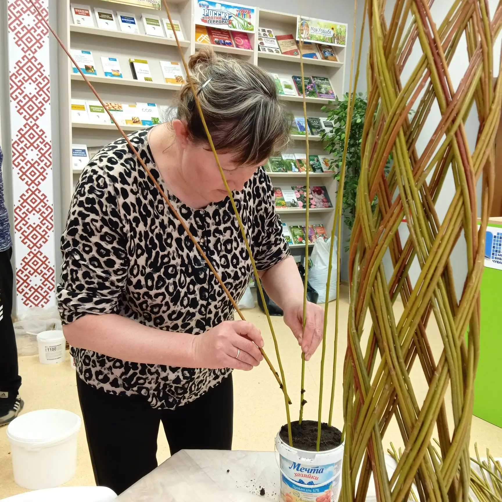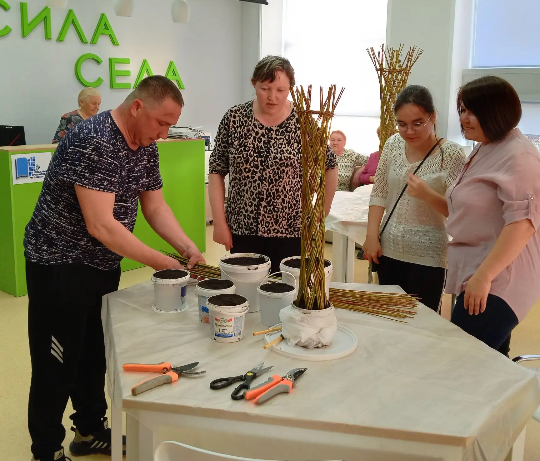 Мастер-класс по плетению из ивовой лозы «Живое деревцо» - это настоящее погружение в мир природного творчества! Николай Чубайкин поделился своим богатым опытом, открыв участникам все тонкости работы с этим живым материалом. Он подробно рассказал, как выбрать самые лучшие прутья, как подготовить их к работе, чтобы они стали податливыми и послушными, словно пластилин. Особое внимание было уделено созданию изящных, воздушных узоров, которые придают изделиям неповторимую легкость и шарм.