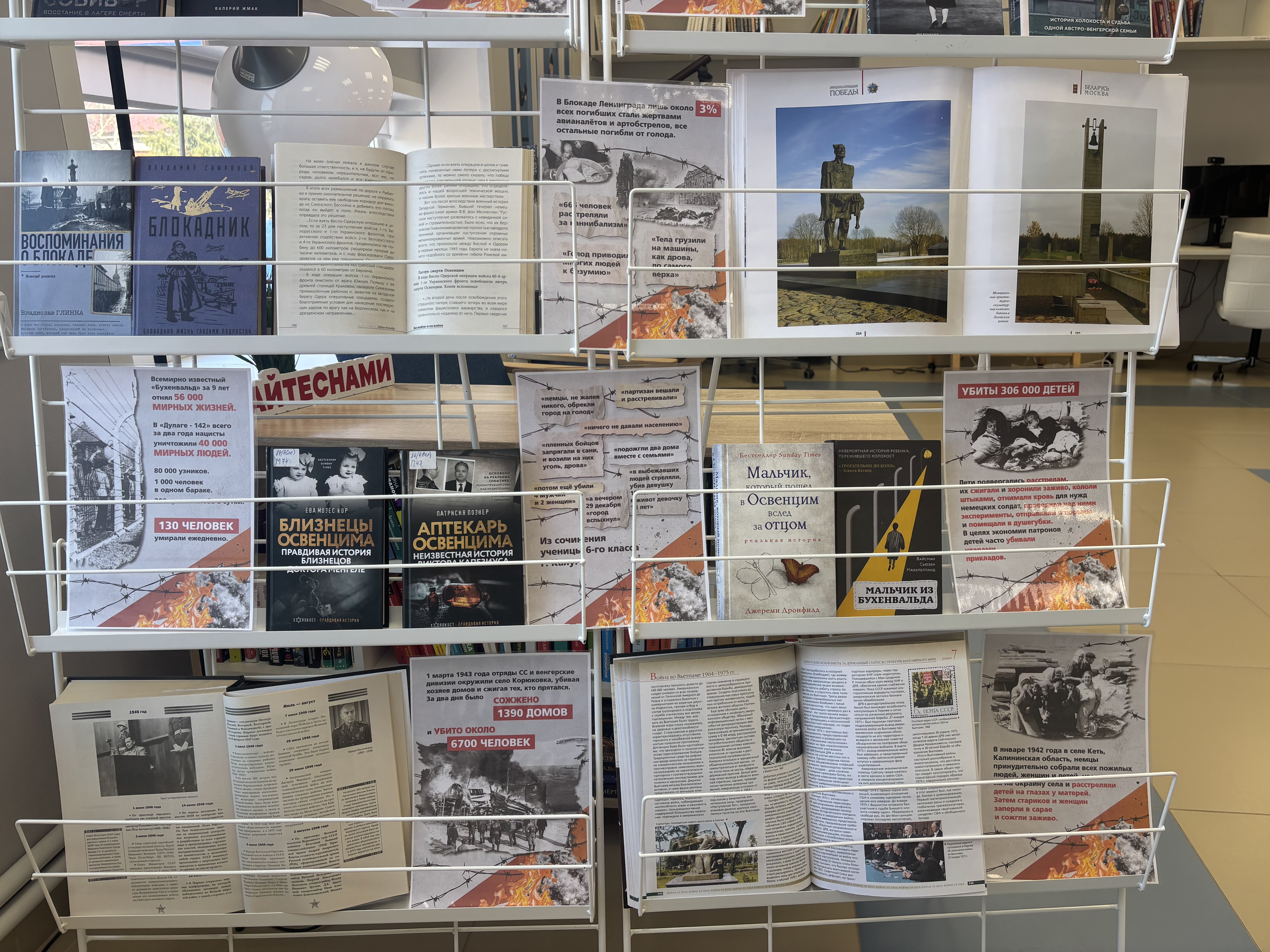 На выставке представлены книги, раскрывающие масштабы и последствия геноцида, а также личные истории тех, кто прошёл через ужасы войны и оккупации. Среди экспонатов — документальные исследования, воспоминания очевидцев, художественные произведения и фотоматериалы, которые позволяют глубже понять, какой ценой была достигнута Победа и почему так важно помнить о преступлениях нацизма.