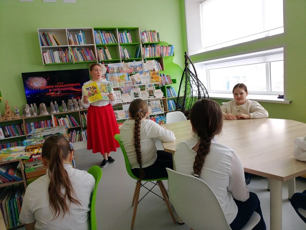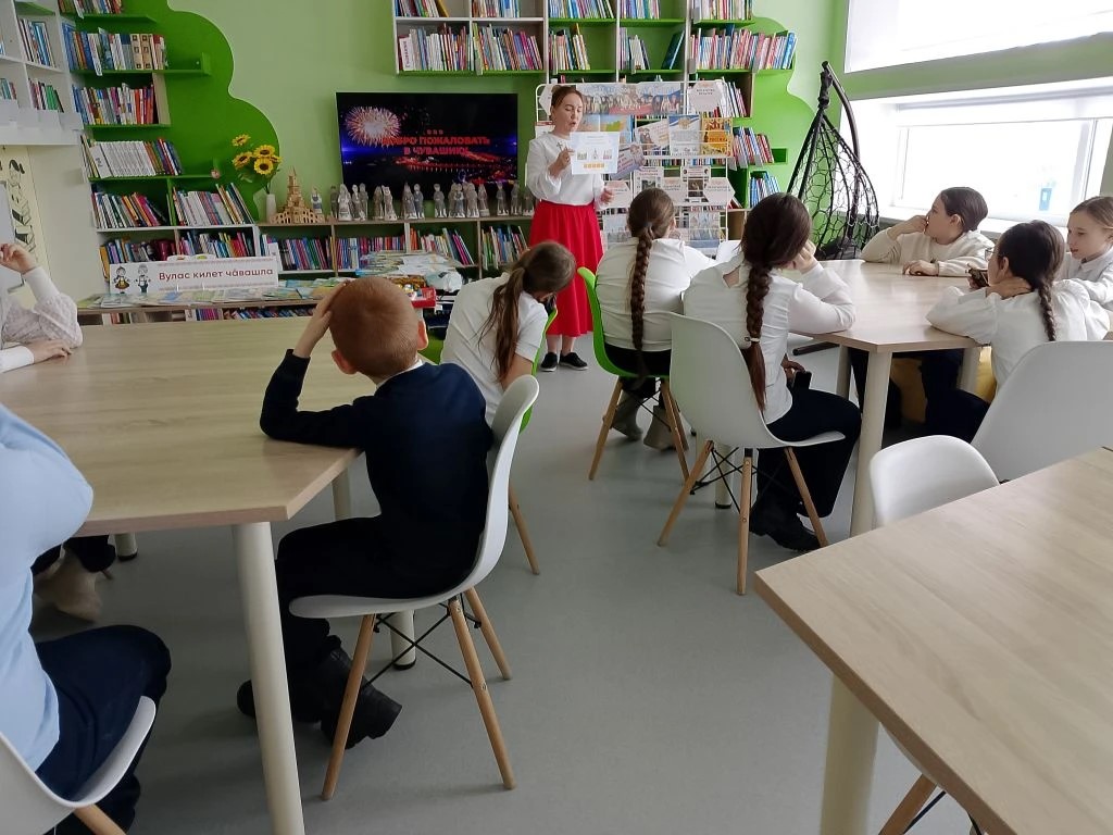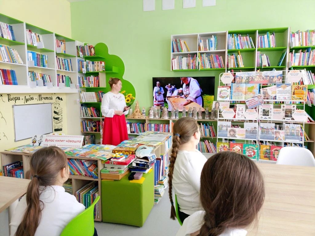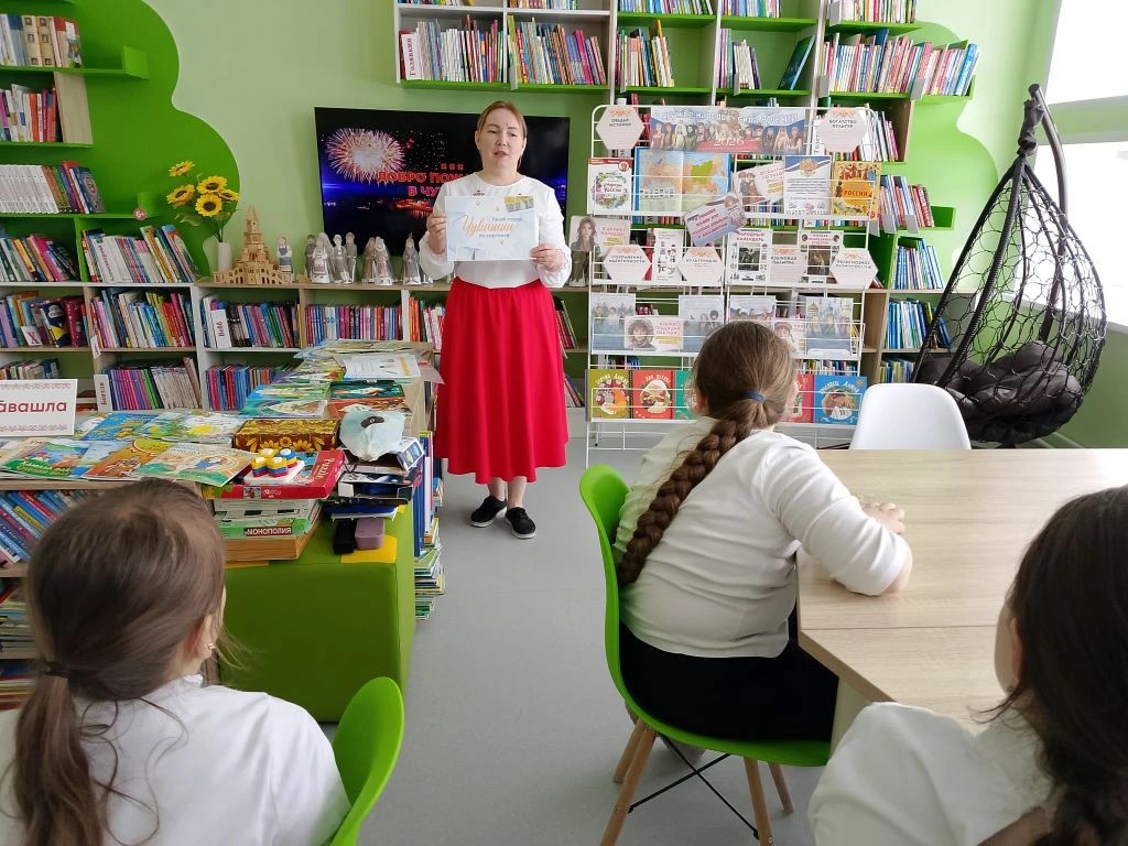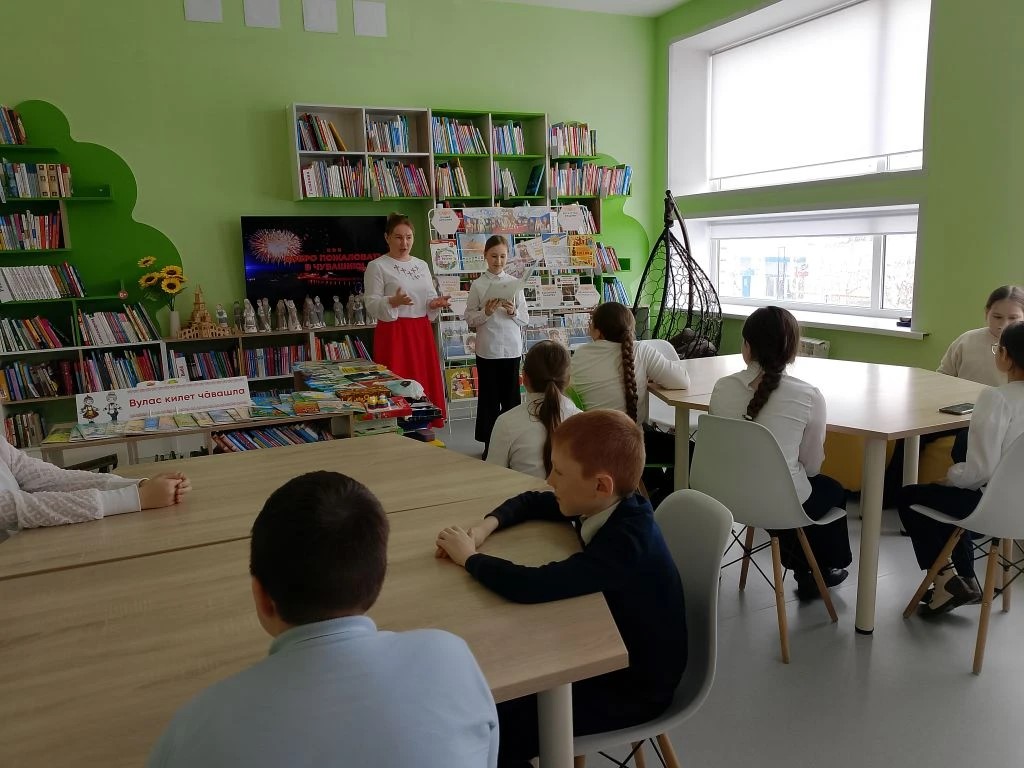 В рамках празднования Дня чувашского языка, который традиционно отмечается 25 апреля, в зале «Сила семьи» прошёл краеведческий час «Ручей хрустальный языка родного». Ребята узнали о многообразии языков на планете и о том, какое место среди них занимает чувашский язык. Они познакомились с интересными фактами о его происхождении и развитии. Одним из ключевых моментов мероприятия стало знакомство с ролью педагога-просветителя Ивана Яковлевича Яковлева в создании чувашской письменности и развитии языка. Его вклад в образование и культуру чувашского народа невозможно переоценить. Иван Яковлевич создал «Букварь» для обучения грамоте чувашских детей, что стало важным шагом в сохранении и развитии языка. Ребята прочитали вслух детские сказки Ивана Яковлевича: «Сармантей» и «Как мужик лошадь искал». Эти произведения не только знакомят с культурой и традициями народа, но и помогают сохранить языковые особенности для будущих поколений.