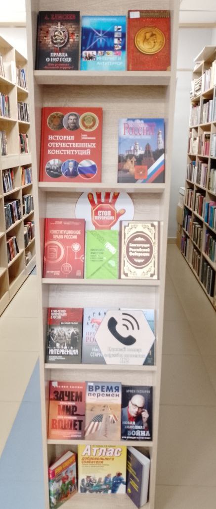 В зале «Сила труда» открылась книжная выставка «Россия против террора!», на которой представлены книги об истории возникновения терроризма, о роли России в борьбе с терроризмом, как на территории нашей страны, так и за рубежом, о том, как распознать террористов, как вести себя при обнаружении опасных предметов.