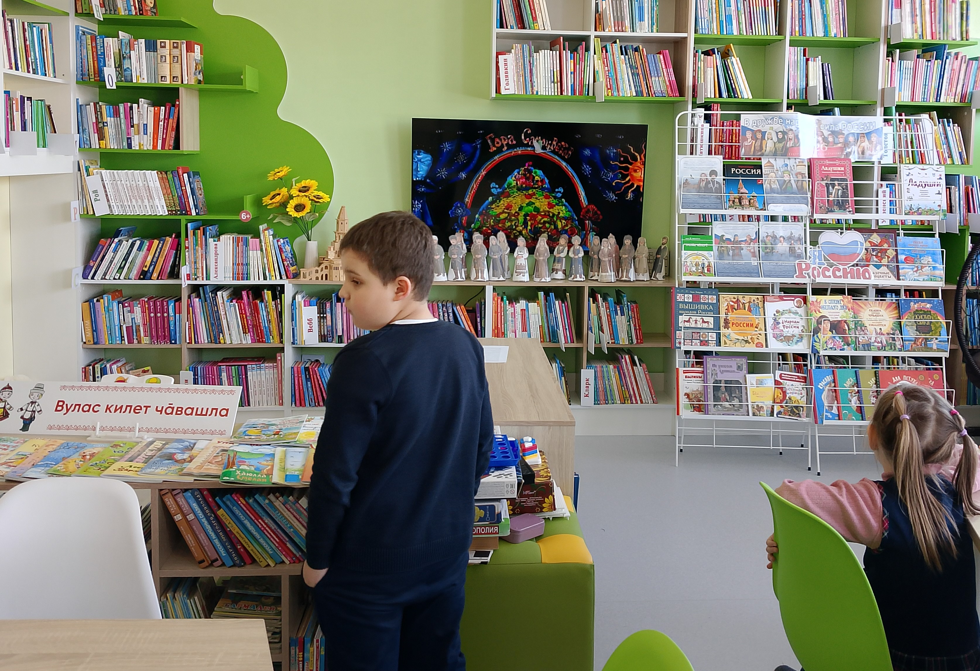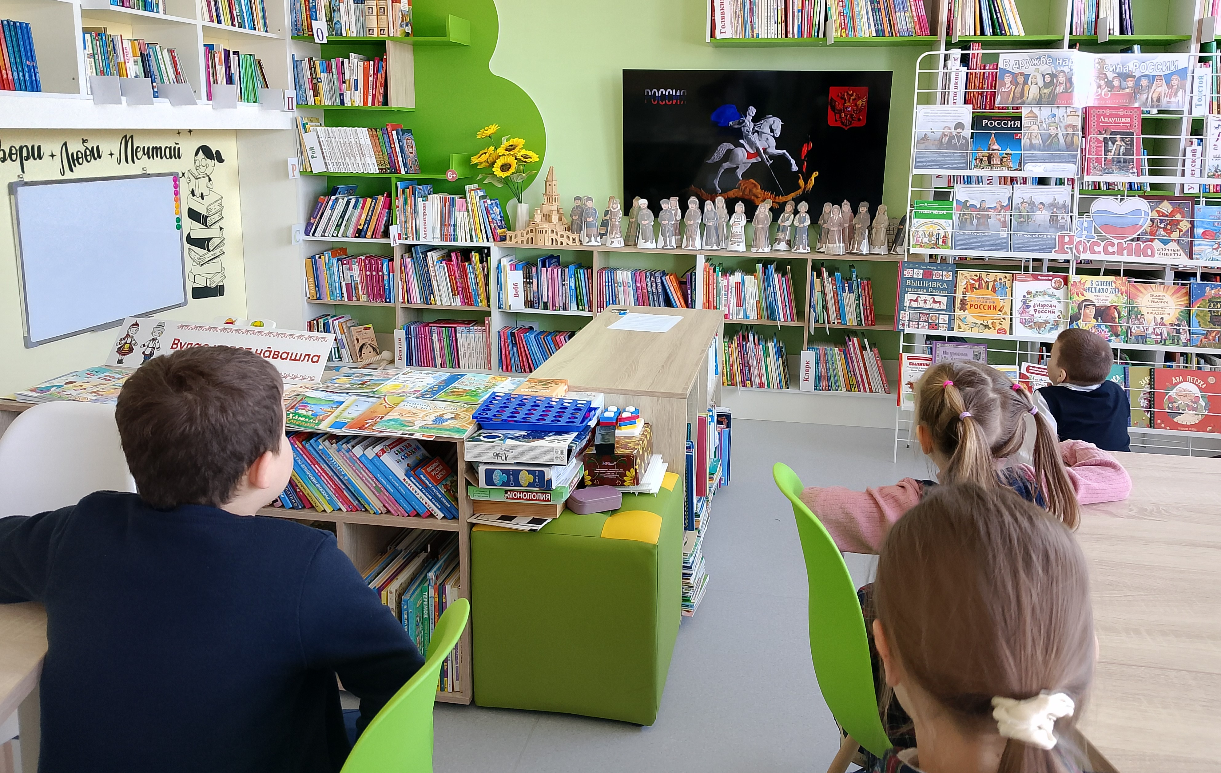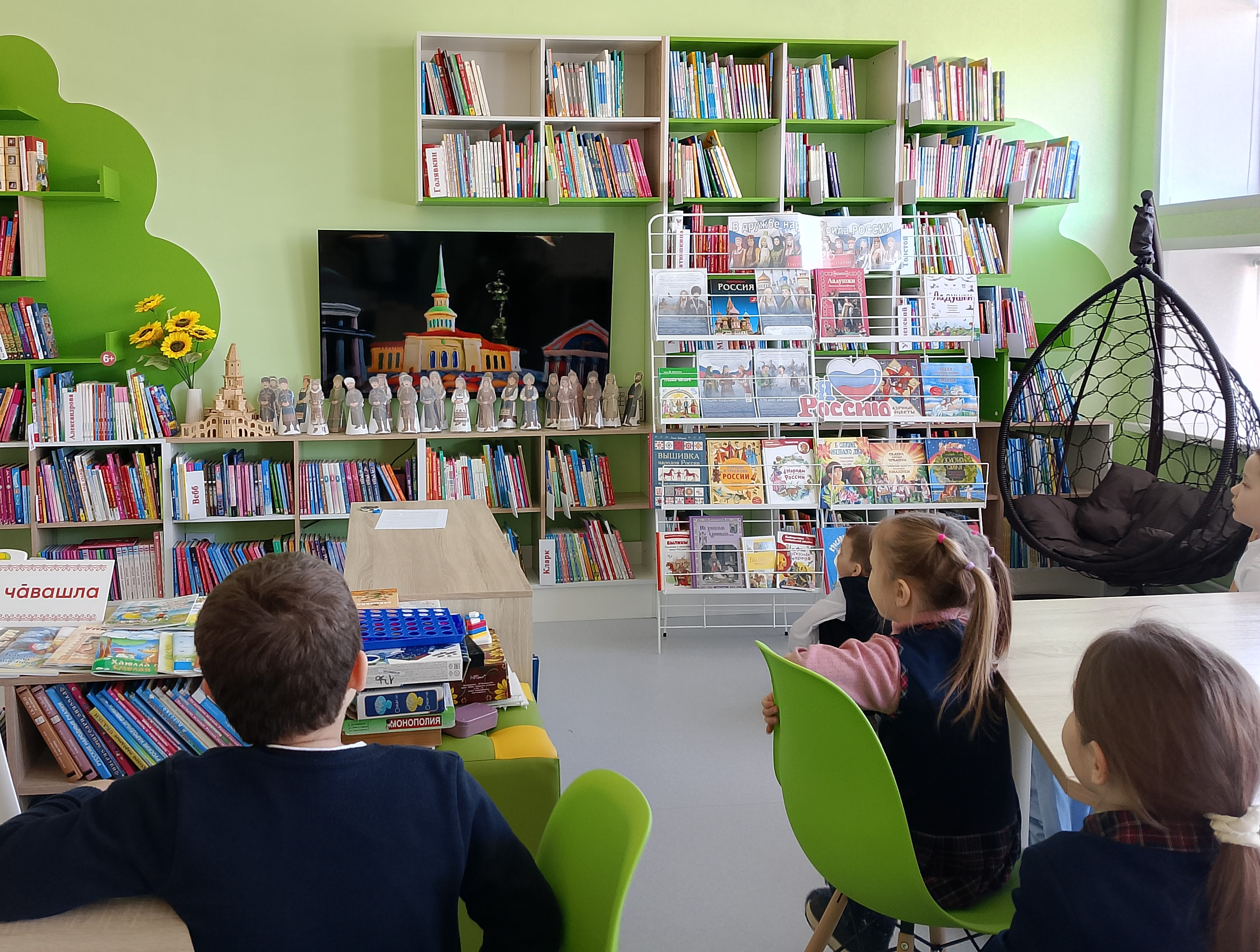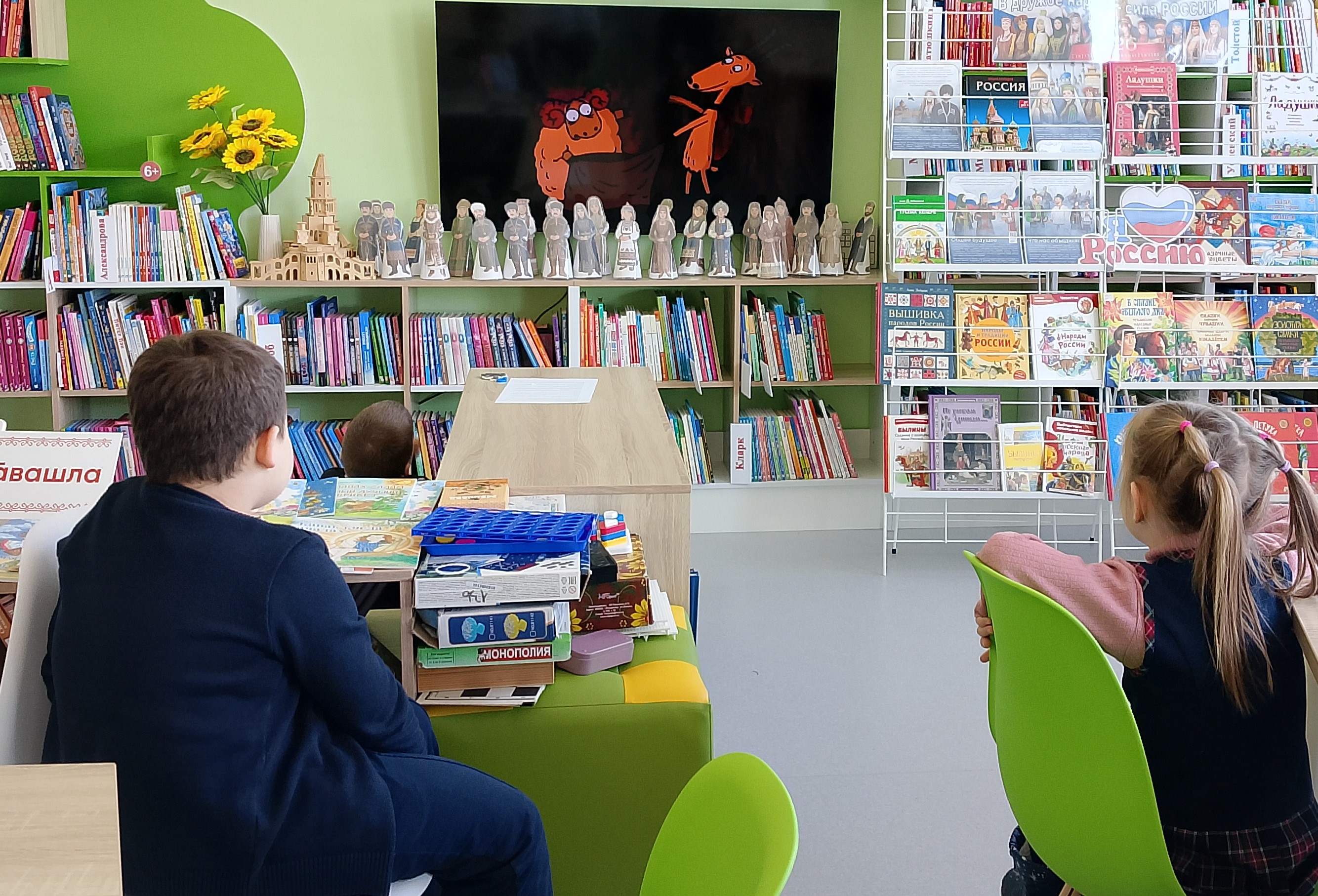 В рамках Года единства народов России и Недели детской книги в зале «Сила семьи» прошёл час сказок «Литературный мост дружбы». Библиотекарь рассказала ребятам, что сказки — это не только увлекательные истории, но и отражение духа народа, его быта и образа жизни. Они учат нас важным жизненным ценностям: доброте, верности, честности, трудолюбию и другим. Дети узнали, что, несмотря на возможные сходства сюжетов, каждая сказка уникальна. Она наполнена деталями, характерными для народа, который её создал. Русские, удмуртские или чувашские сказки несут в себе особенные черты, присущие именно этому народу. Для знакомства с разнообразием народных сказок была организована книжная выставка — серия отлично иллюстрированных книг. Ребята смогли увидеть и прочувствовать богатство и многообразие сказочного мира разных народов. Затем прошла игра-викторина, которая представляла собой несколько туров. Дети активно угадывали сказки и сказочных персонажей, участвуя в конкурсах: «Угадайте сказку», «Угадай героя сказки», «Исправь ошибку в названии сказок», «Вопрос-ответ». Они продемонстрировали отличные знания сказок отечественных и зарубежных писателей. Кульминацией мероприятия стало знакомство с мультфильмами из рубрики «Гора самоцветов»: «Про барана и козла» и «Колобок». Эти мультфильмы стали прекрасным дополнением к рассказу библиотекаря и позволили ребятам наглядно увидеть, как сказки разных народов могут быть представлены в современном формате.