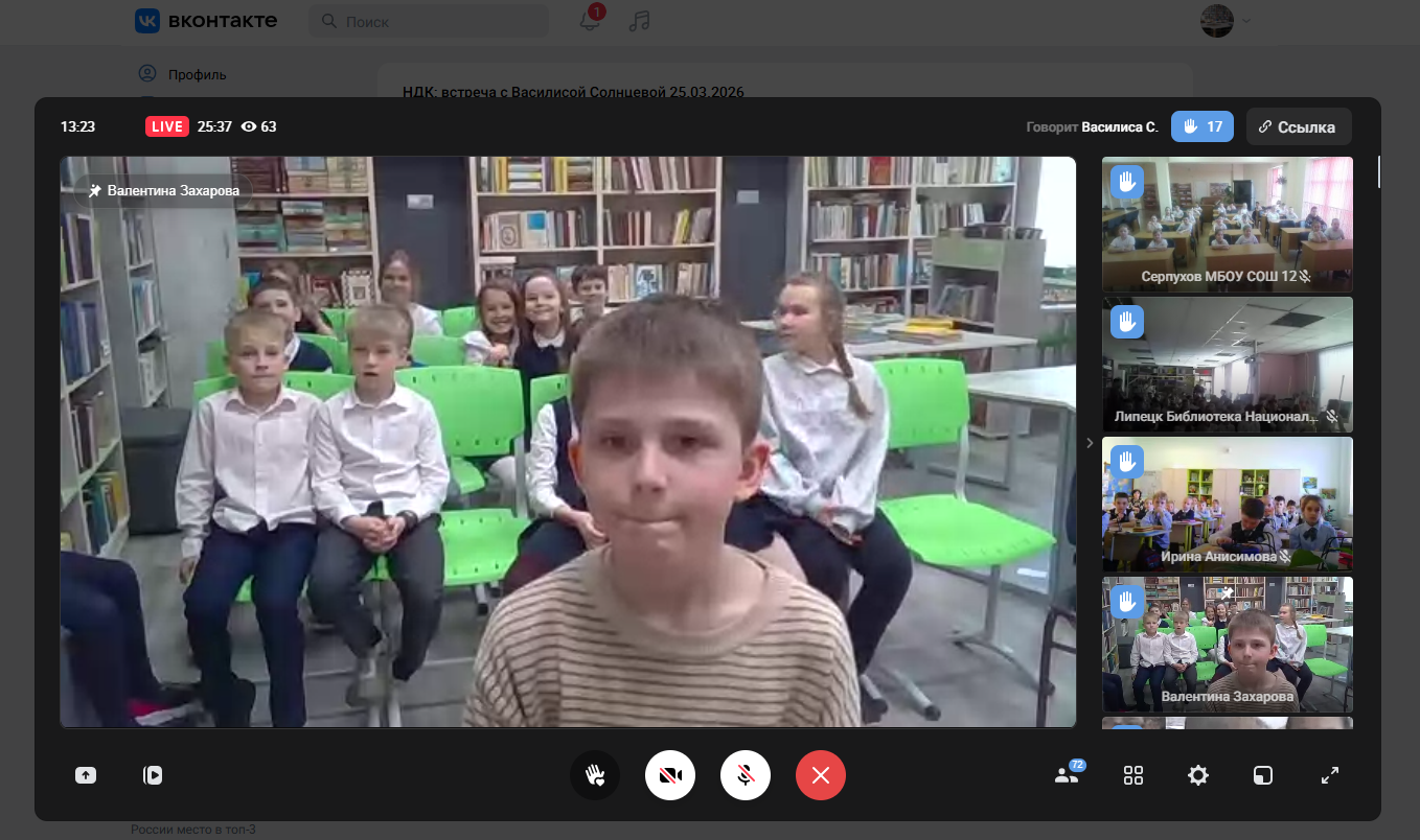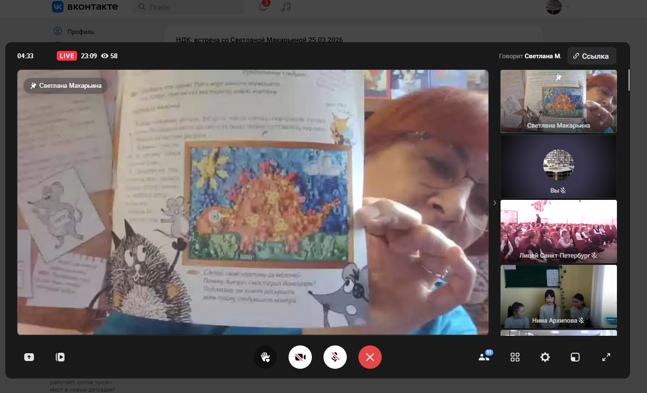 Сегодня приняли участие в двух увлекательных онлайн-встречах. Первая встреча была с Василисой Солнцевой «Экспериментальное веселье». Особенно нас впечатлила книга «А вот и бегемот». Эта книга помогает понять, как через истории можно познавать мир. Читатели смогли увидеть, как истории могут открывать новые горизонты восприятия и помогать нам лучше понимать окружающий мир. Кроме того, на встрече ребята попробовали себя в роли исследователей. Это позволило взглянуть на привычные вещи под новым углом и увидеть в них то, чего раньше не замечали. Опыты были не только интересными, но и познавательными.