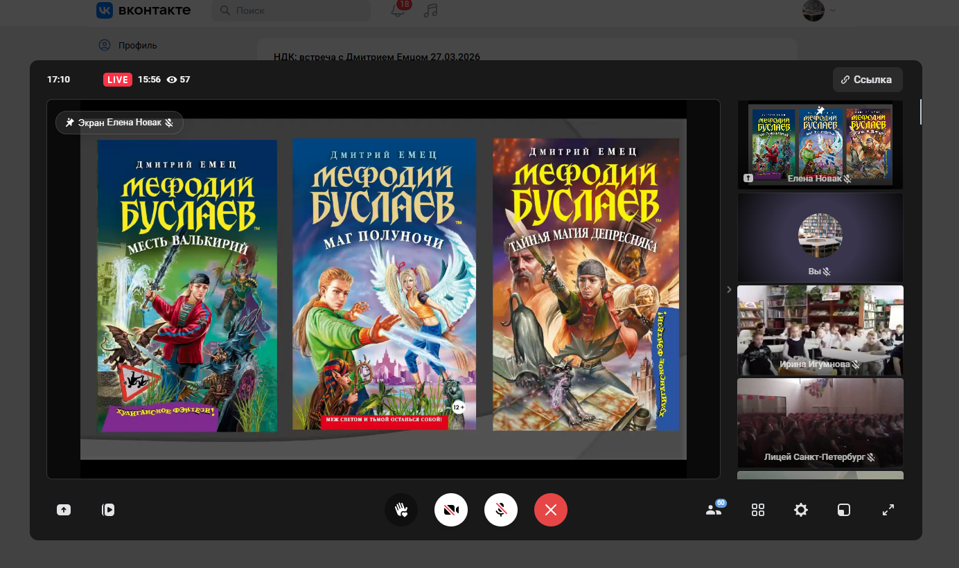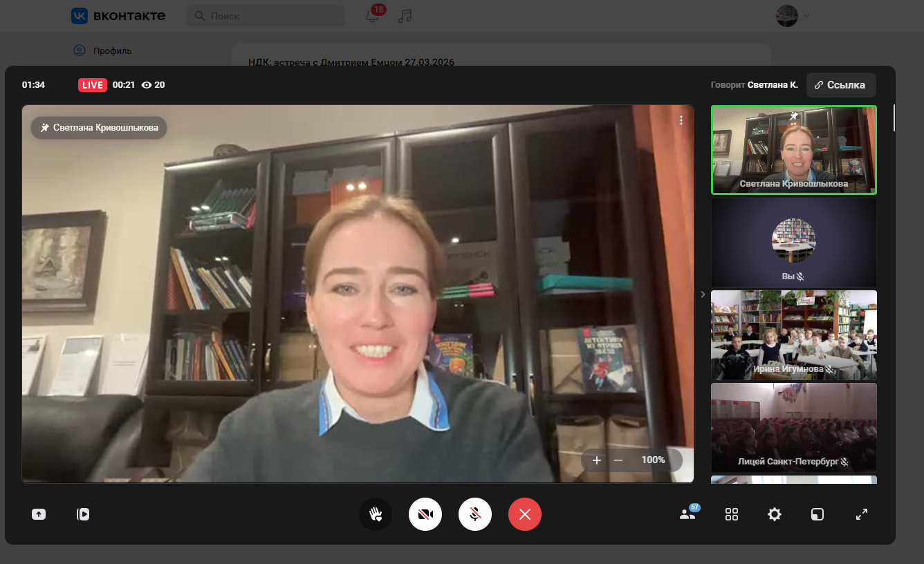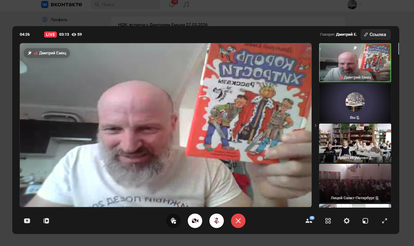 На онлайн-встрече с Андреем Слониковым «Весёлые приключения в мире книг», где смогли по-новому взглянуть на поэзию и язык. Поэтическое путешествие, организованное Андреем, было увлекательным и познавательным. Игры со словами помогли осознать богатство и многообразие языка, его возможности и потенциал. Особенно интересным было узнать, как рождаются стихи — этот процесс оказался не только творческим, но и глубоко личным.